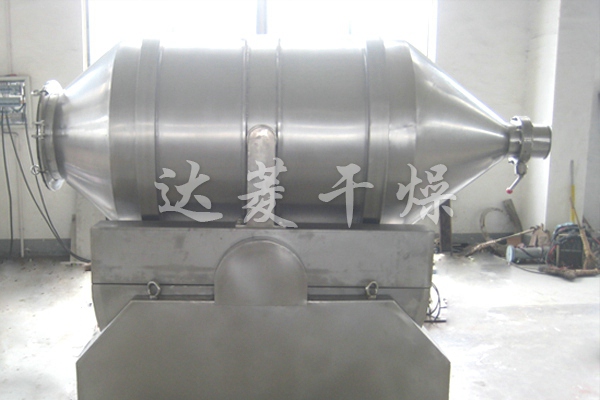 EYH 二維運動混合機的轉筒可同時進行二個運動,一個為轉筒的轉動,另一個為轉筒隨擺動架的擺動。被混合物料在轉筒內隨轉筒轉動、翻轉、混和的同時,又隨轉筒的擺動而發生左右來回的摻混運動,在這兩個運動的共同作用下,物料在短時間內獲得充分的混合。EYH二維混料機適合所有粉、粒狀物料的混合。