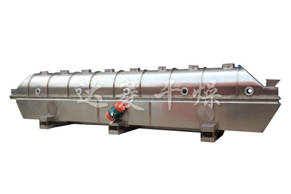 產品概述:物料自進料口進入機內,在振動力作用下,物料沿水平流化床拋擲,向前連續運動,熱風向上穿過流化床同濕物料換熱后,濕空氣經旋風分離器除塵后由排風口排出,干燥物料由排料口排出。